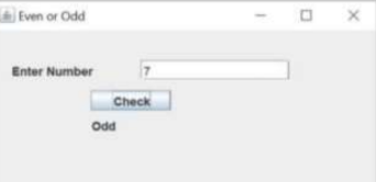a) Create the following GUI form in Java that checks a number entered in the text box is even or odd.